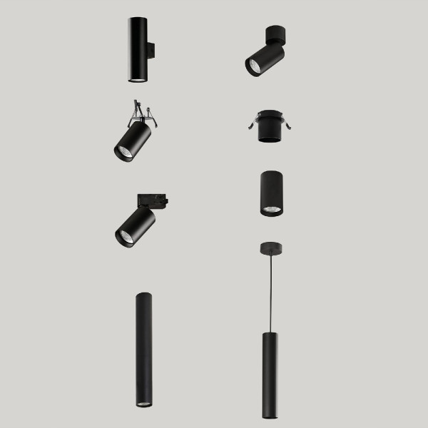 ZOOM es una lámpara plafón para iluminación interior. Fabricado en aluminio con acabado en negro texturado.