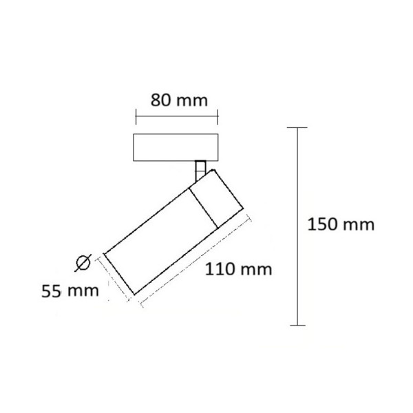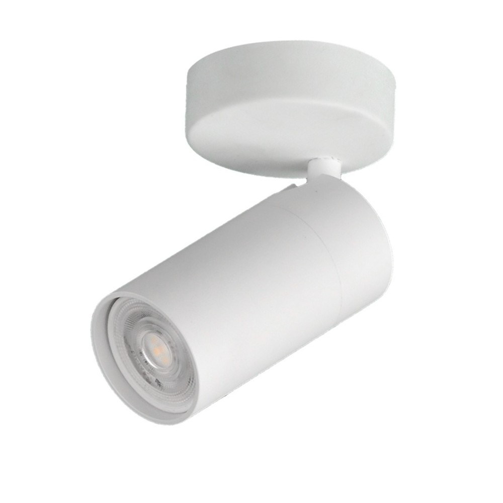 Foco de una luz disponible en blanco, negro o haya mate que admite bombilla GU10 (no incluida). Foco orientables 360º y basculante 90º.