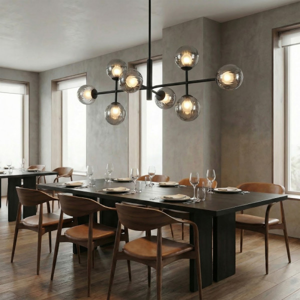 Estructura colgante de techo de 8L acabado negro mate sin tulipa.