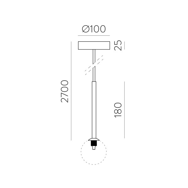 Colgante de techo acabado negro texturado sin tulipa.