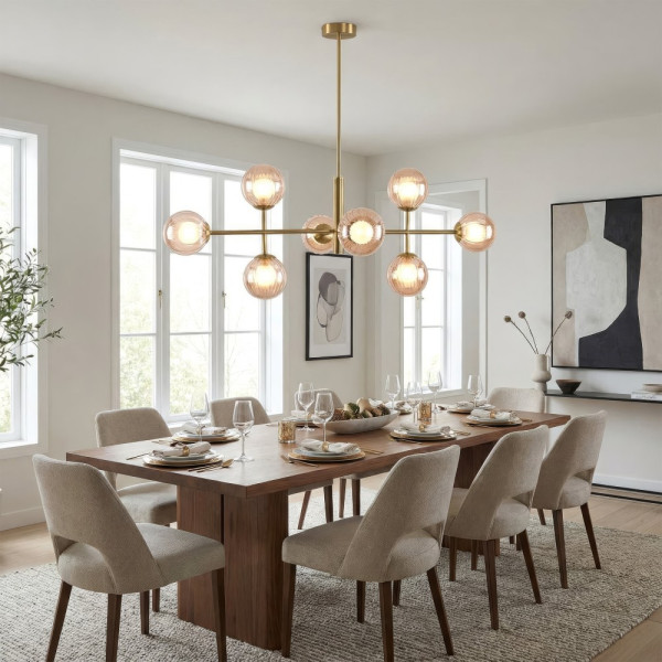 Estructura colgante de techo de 8L acabado oro viejo sin tulipa.