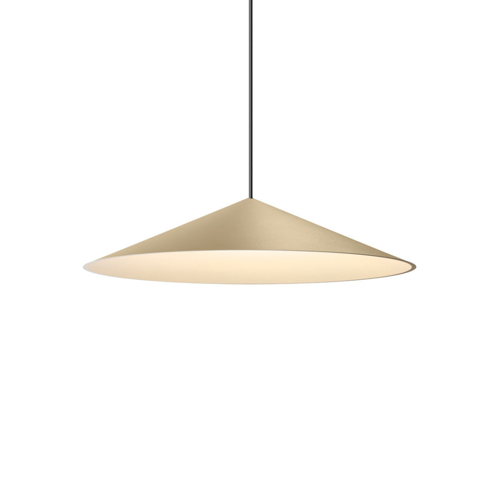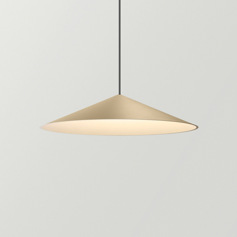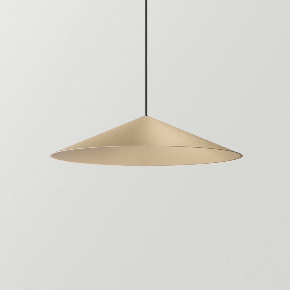 La luminaria de suspensión Dune viste la luz y construye el espacio con una silueta cónica, clásica y liviana. Su lenguaje entre lo técnico y lo decorativo, redefine este arquetipo con una geometría pura de cantos aguzados cuál papel plegado, y una luz proyectada plácida y homogénea que invita al disfrute.