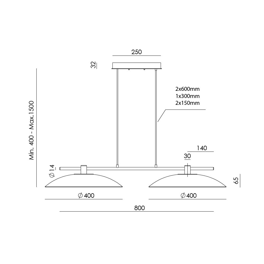 - Mín. 400 / Máx. 1500 mm