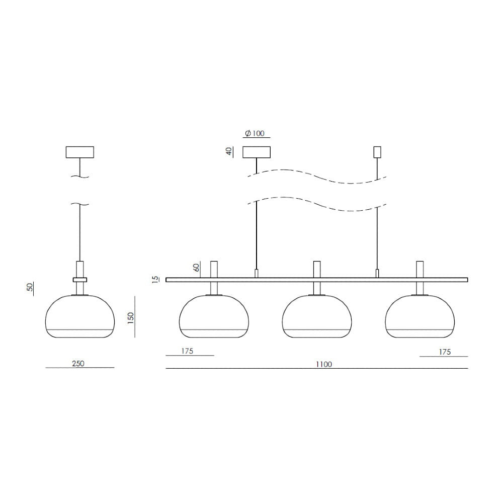 Colgante lineal de 3 luces: ideal para comedores y cocinas, combinando tres tulipas que generan un efecto visual armonioso y contemporáneo.