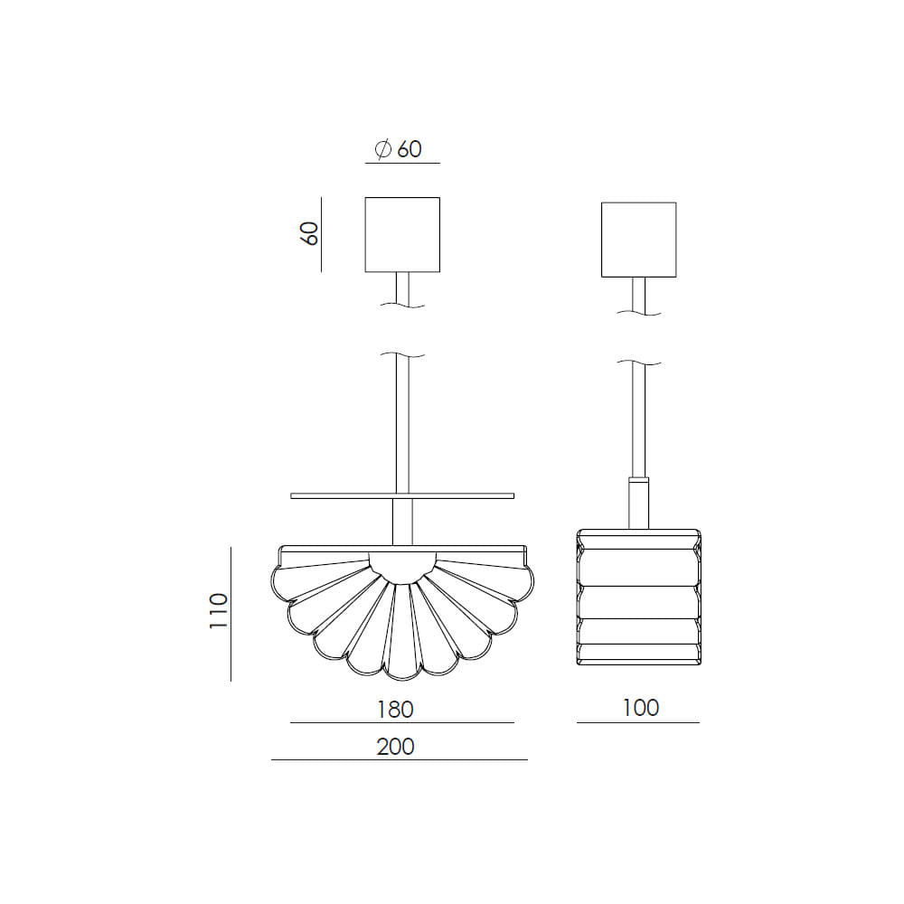 Colgante individual de diseño moderno y elegante, parte de la colección Gina de Aromas del Campo. Este colgante destaca por su pantalla de cristal opal en forma de abanico semicircular, suspendida de un marco metálico disponible en dos acabados: negro mate o dorado.