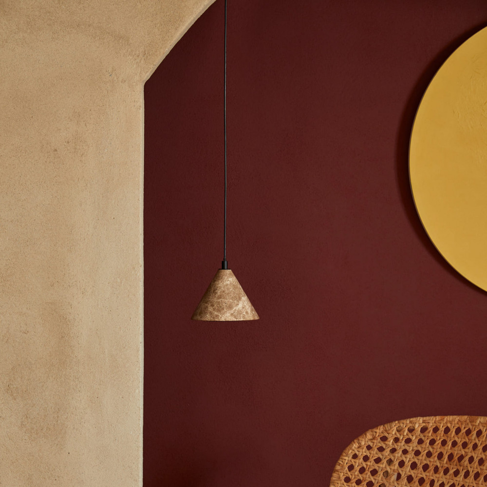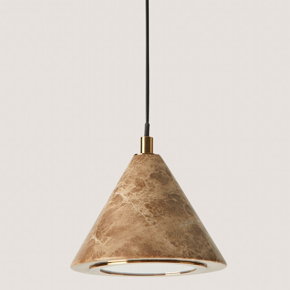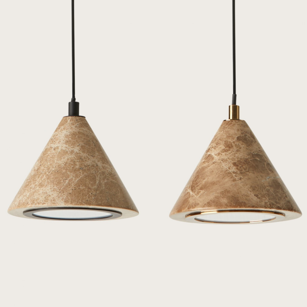 Lámpara colgante cónica decorativa fabricada en mármol.