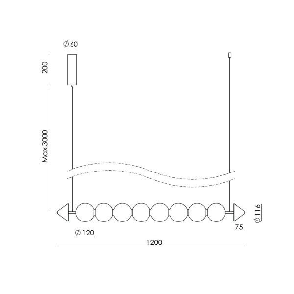 Lámpara de techo colgante LED con 8 esferas de cristal, fabricado en metal y mármol disponibles en dos acabados.