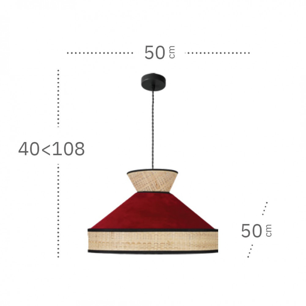 Colgante de techo con pantalla realizada en rafia natural y terciopelo acabado en verde.