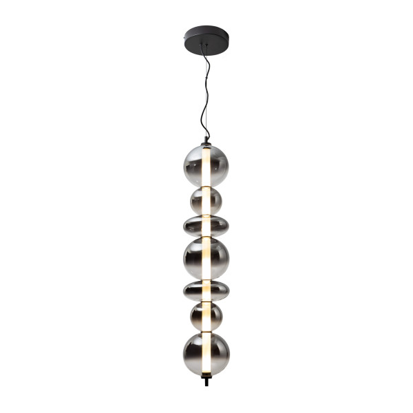 KOMBO es una familia de lámparas colgantes creada por Nutcreatives. La serie cuenta con distintos tamaños y acabados que comparten una estructura cilíndrica en negro en la parte superior. La pantalla de esta luminaria gris, está fabricada en metal, es de estilo minimalista y juega con las formas geométricas. Versión con florón multiple de 7 luces.