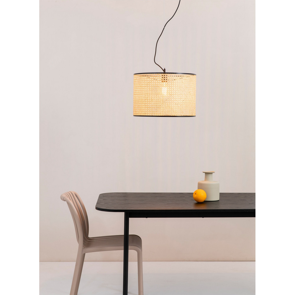 MAMBO es una colección para la iluminación interior diseñada por Faro Lab. Esta lámpara colgante negra con pantalla ratán es ideal para dormitorios y salones. El cable tiene tensor, lo que permite instalar la luminaria en puntos desplazados. Es una buena opción para hoteles. Versión de pantalla 450mm.