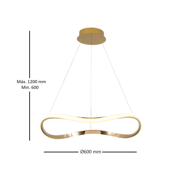 Colgante led acabado en oro rosa 27W LED, 1600 lm 3.000K.