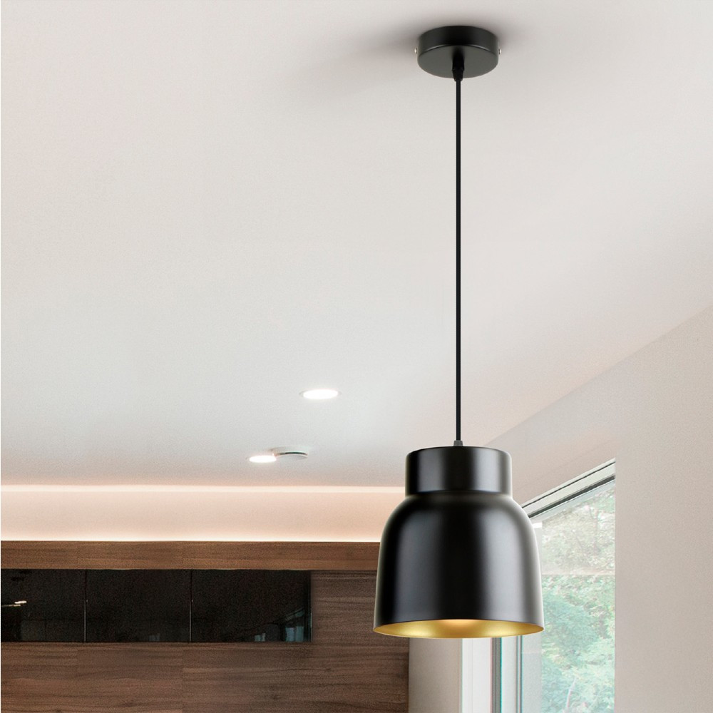 Colgante acabado en negro mate y oro 1 E27 LED no incluida.