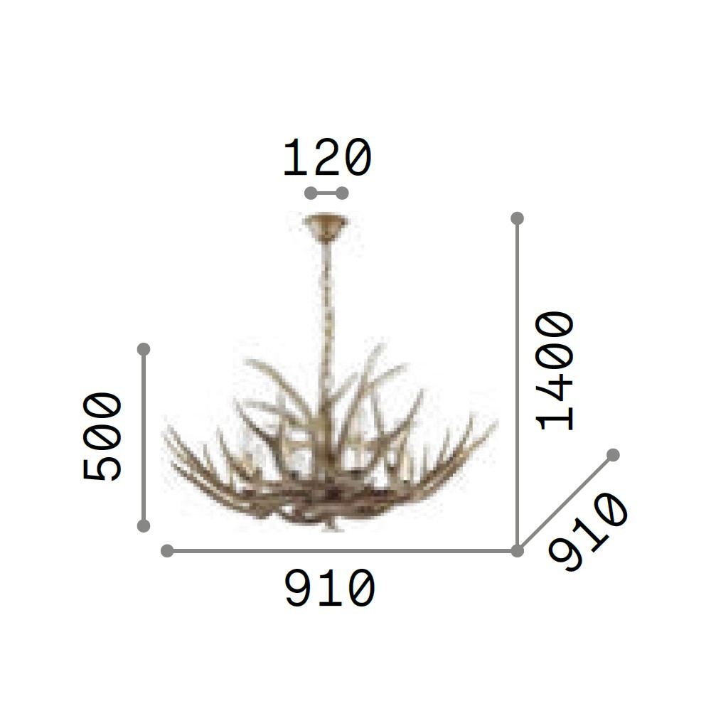 Armazón con estructura portante en metal. Elementos decorativos en resina trabajada artesanalmente y pintada a mano como fièl reproducción de cuernos y madera entallada.