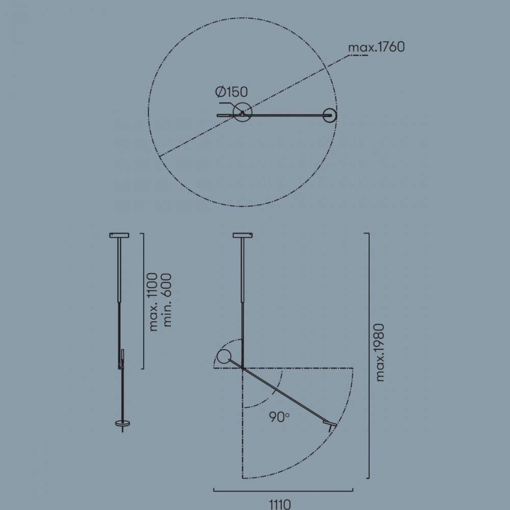 Colgante Invisible Single Fixed LED 10.5 Blanco cálido - 3000K PHASE CUT Negro 550lm
