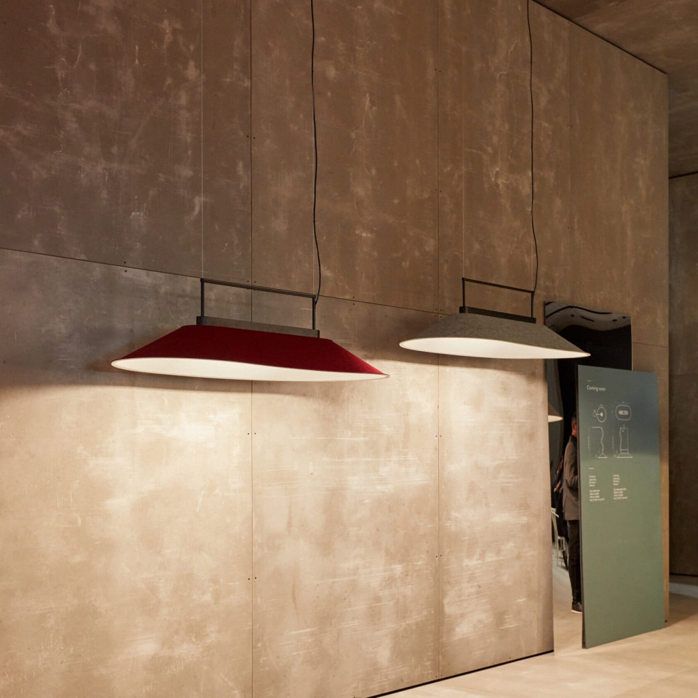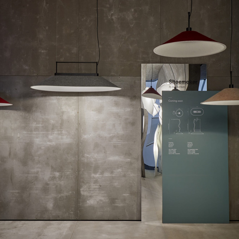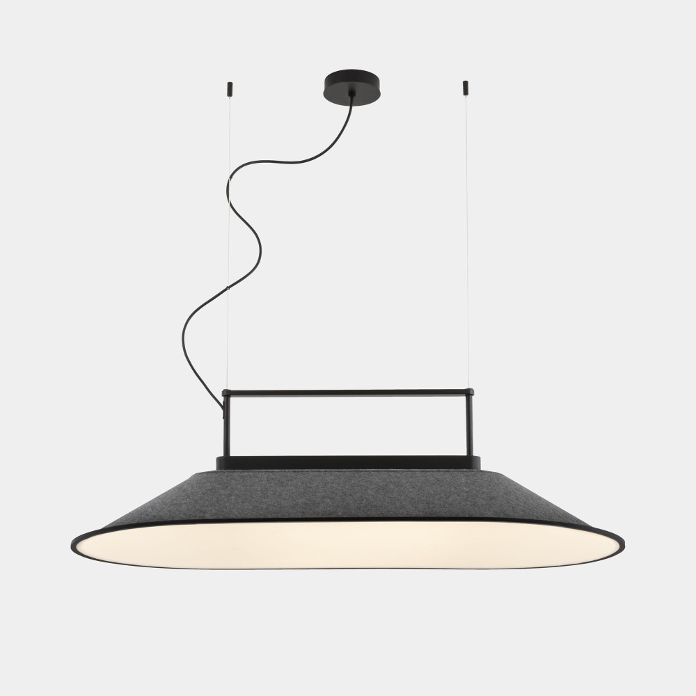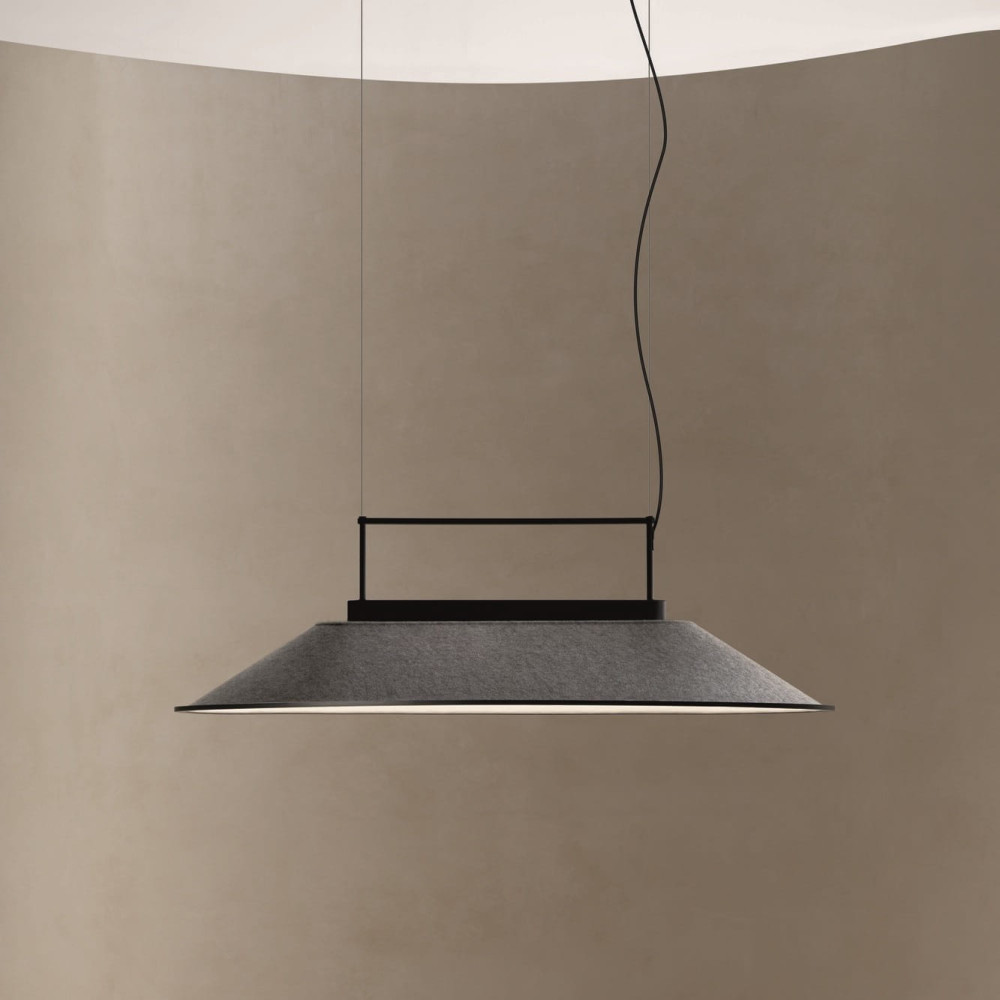 reinterpreta con Shoemaker una forma clásica, dibujando con líneas rectas y puras una pieza muy técnica a la vez que decorativa. El acabado en fieltro reciclado del difusor en las dos opciones disponibles, aporta propiedades fonoabsorbentes y es un factor determinante en la personalidad de la colección, que se presenta además con distintas temperaturas de color y otras ventajas de la iluminación inteligente.