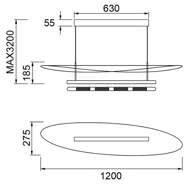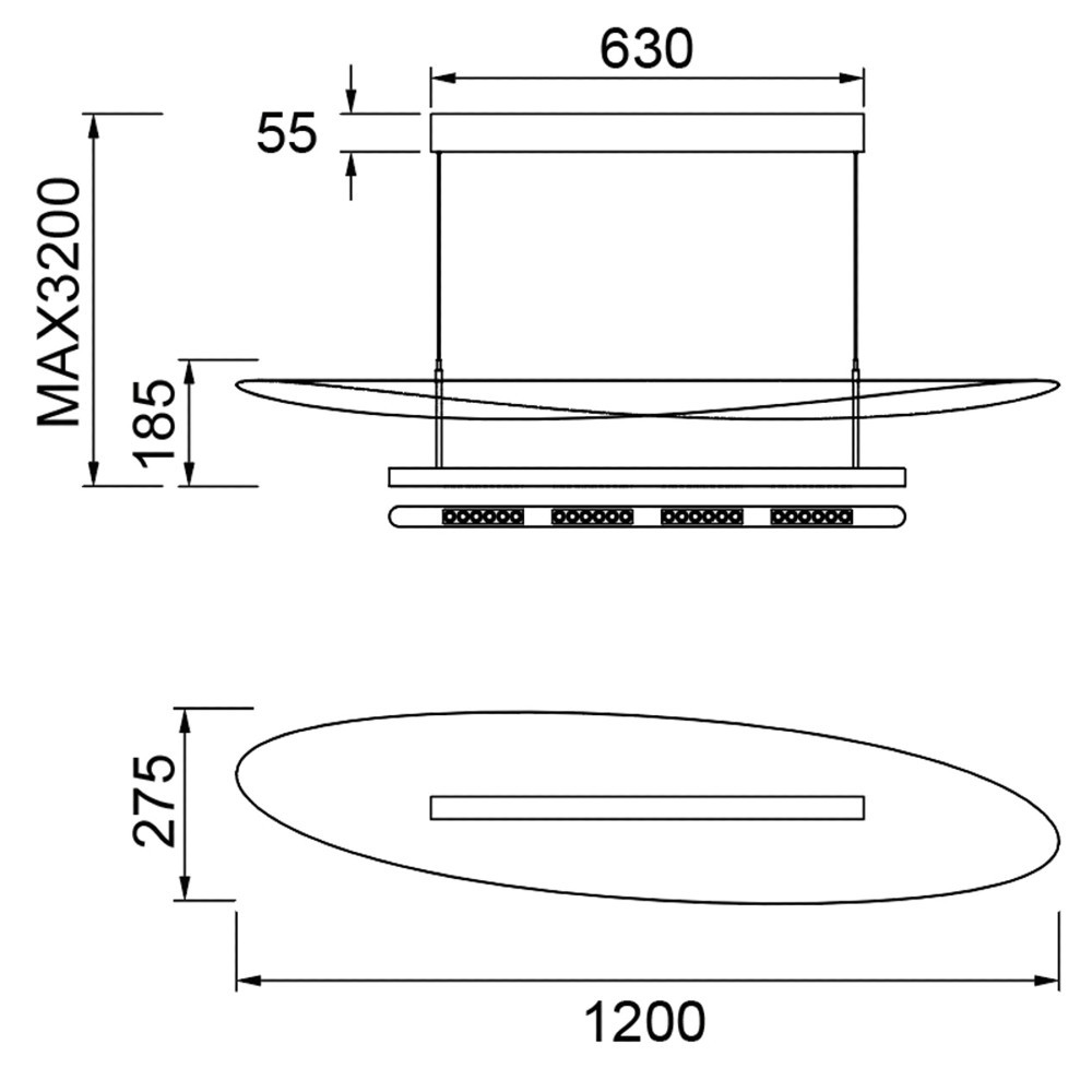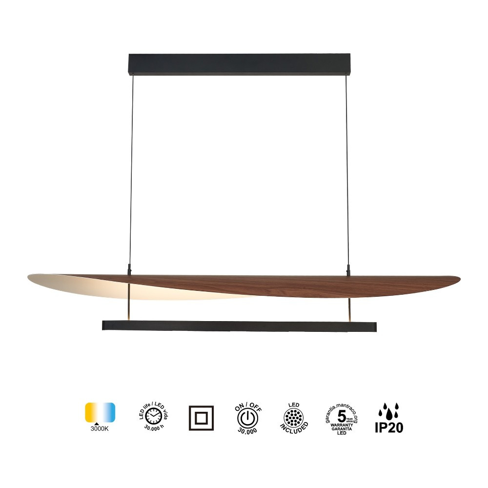 Colgante LED de 100cm acabado en negro y madera oscura. 40W 3000K 2280 lm TRIAC