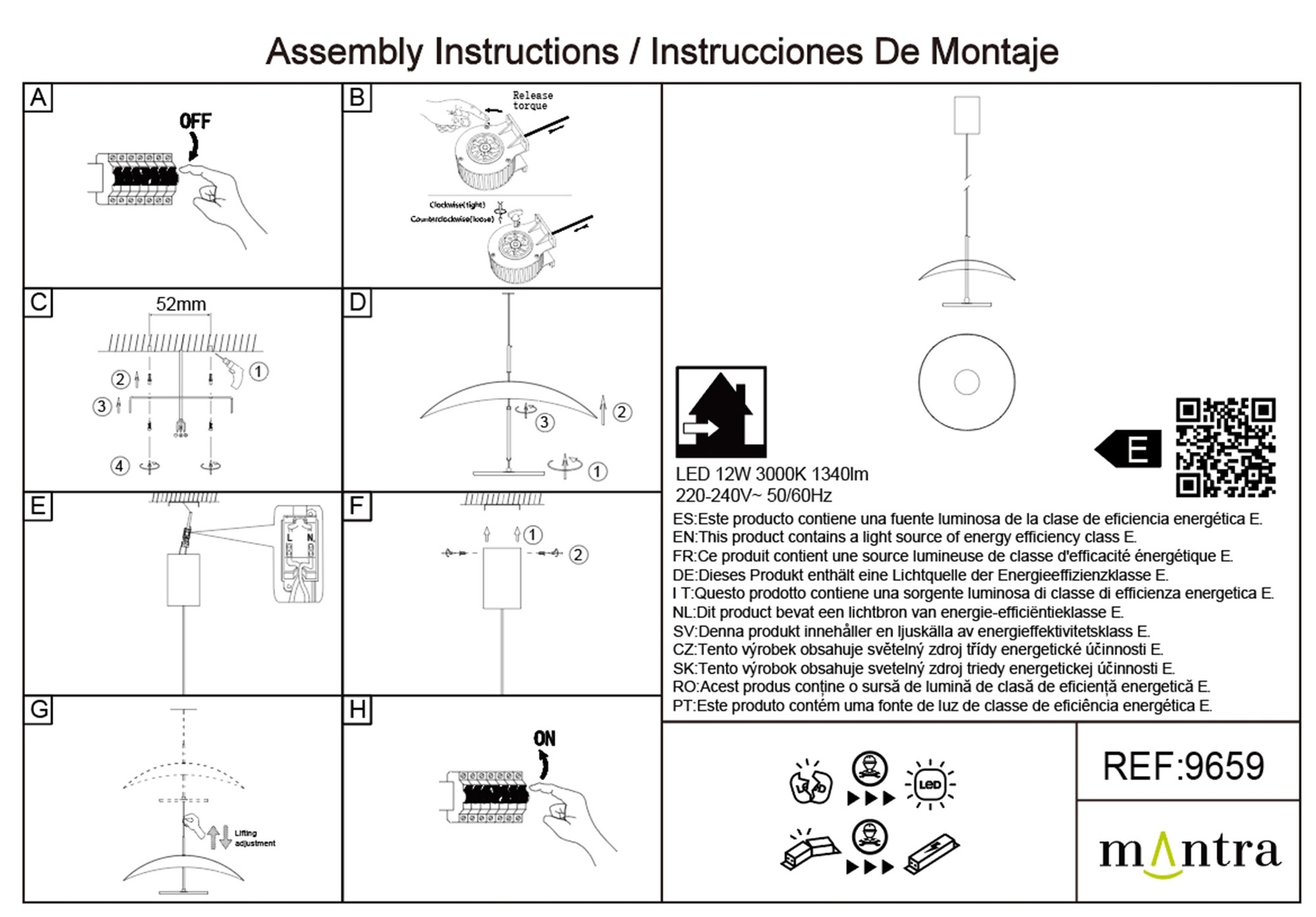 Equipada con tecnología LED de 12W, ofrece un flujo luminoso de 1060 lúmenes con una temperatura de color de 3000K (blanco cálido), ideal para crear ambientes acogedores en salones, comedores o dormitorios. Además, es regulable (dimmable) mediante sistema TRIAC, permitiendo ajustar la intensidad de la luz según cada momento.