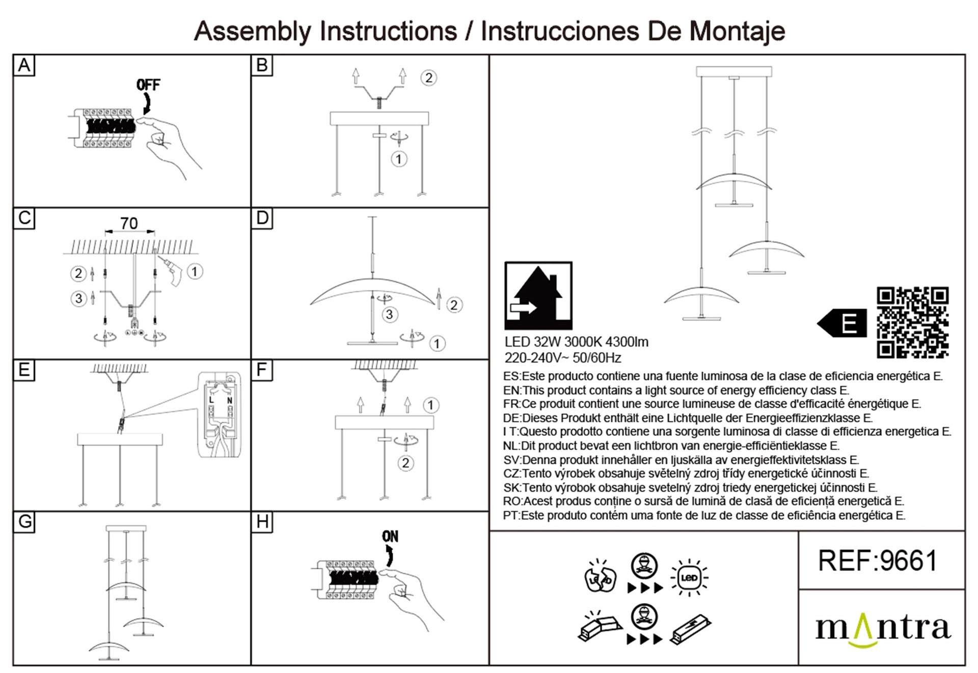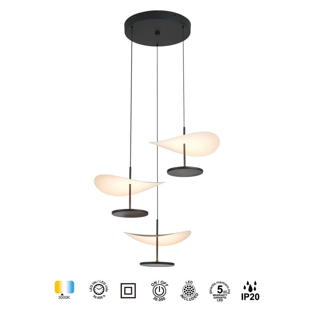 Equipada con tecnología LED de 32W, ofrece un flujo luminoso de 2970 lúmenes con una temperatura de color de 3000K (blanco cálido), ideal para crear ambientes acogedores en salones, comedores o dormitorios. Además, es regulable (dimmable) mediante sistema TRIAC, permitiendo ajustar la intensidad de la luz según cada momento.