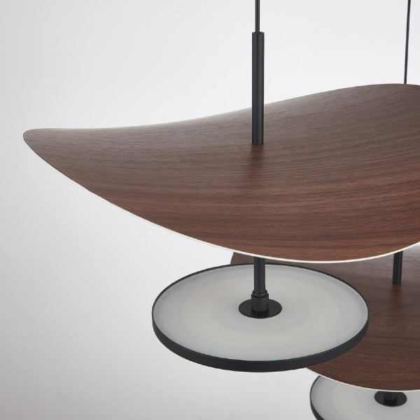 Colgante LED de 52,5cm acabado en negro y madera oscura. 32W 3000K 2970 lm TRIAC