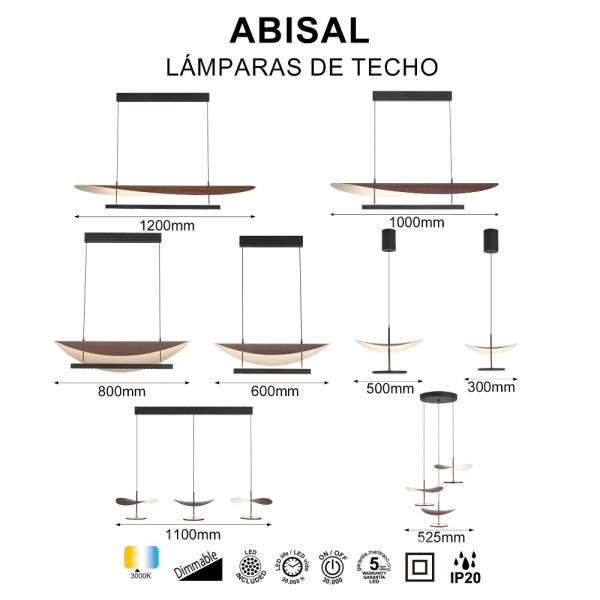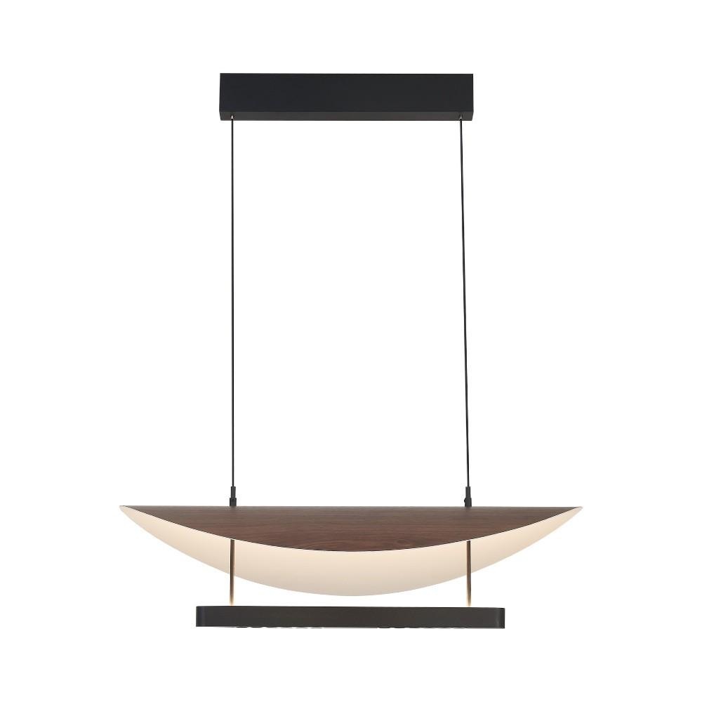 Colgante LED de 120cm acabado en negro y madera oscura. 48W 3000K 2610lm TRIAC