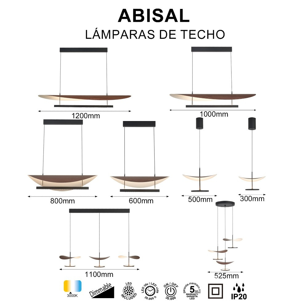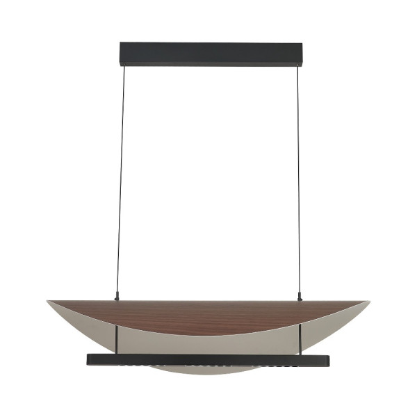 Colgante LED de 80cm acabado en negro y madera oscura. 40W 3000K 2280 lm TRIAC