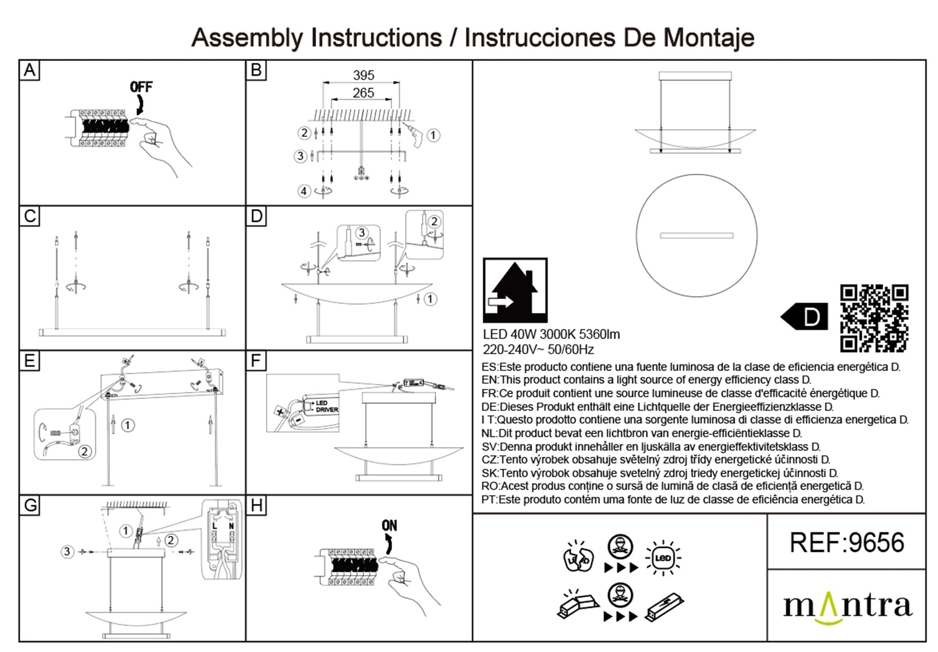 Equipada con tecnología LED de 40W, ofrece un flujo luminoso de 2280 lúmenes con una temperatura de color de 3000K (blanco cálido), ideal para crear ambientes acogedores en salones, comedores o dormitorios. Además, es regulable (dimmable) mediante sistema TRIAC, permitiendo ajustar la intensidad de la luz según cada momento.