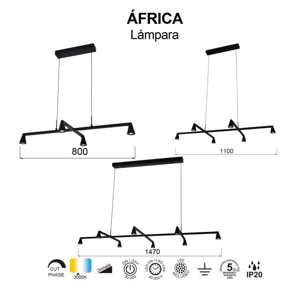 Pensada para instalación en interiores (IP20, Clase I), AFRICA es la elección perfecta para quienes buscan una lámpara decorativa de alto impacto visual con tecnología LED eficiente.