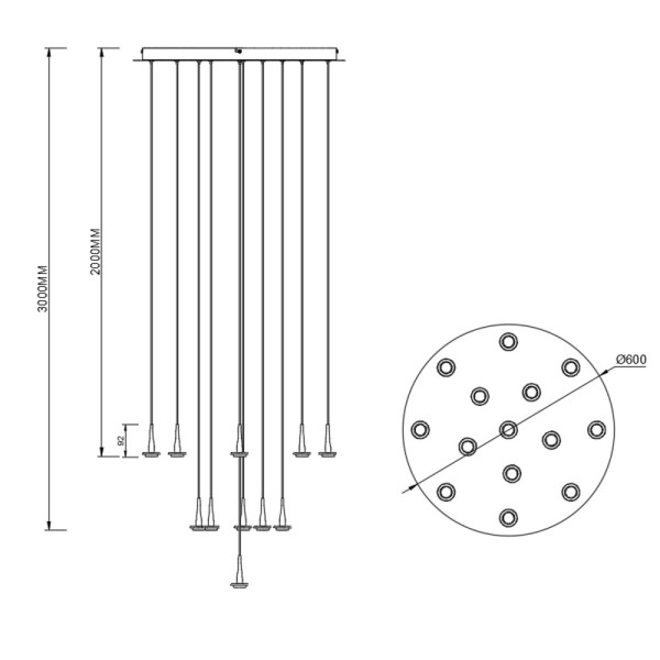 Incorpora tecnología LED integrada de 70W, ofreciendo una iluminación cálida de 3000K con un flujo luminoso de 7050 lúmenes, ideal para crear ambientes acogedores. Su altura ajustable hasta 300 cm permite adaptarla fácilmente a diferentes alturas de techo y necesidades decorativas.