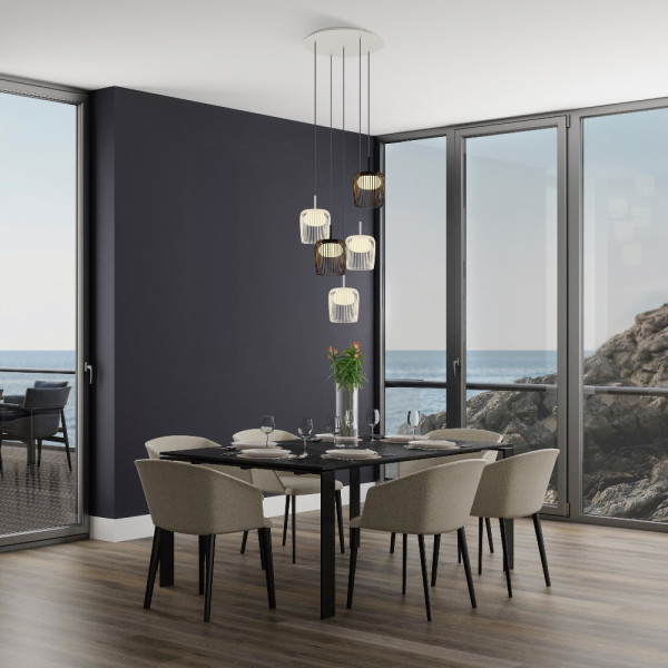 Una lámpara colgante versátil y decorativa, ideal para crear puntos de luz focales con un diseño sencillo y actual.