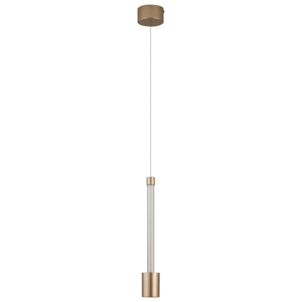 Colgante LED oro-oro rosa con cuerpo acrílico y difusor metálico. 7W, 3000K, 960lm
