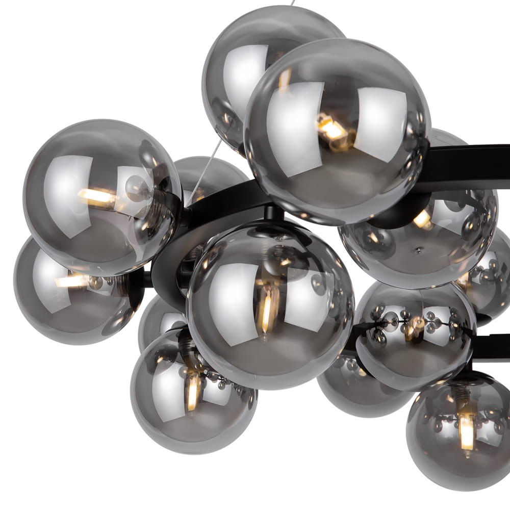 Colgante lineal fabricado en metal acabado negro con 25 tulipas de vidrio smoky. 25 x G9 LED (no incl.)