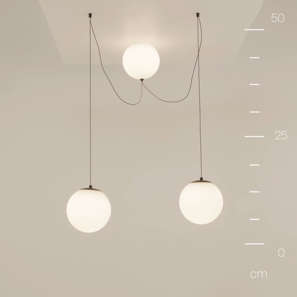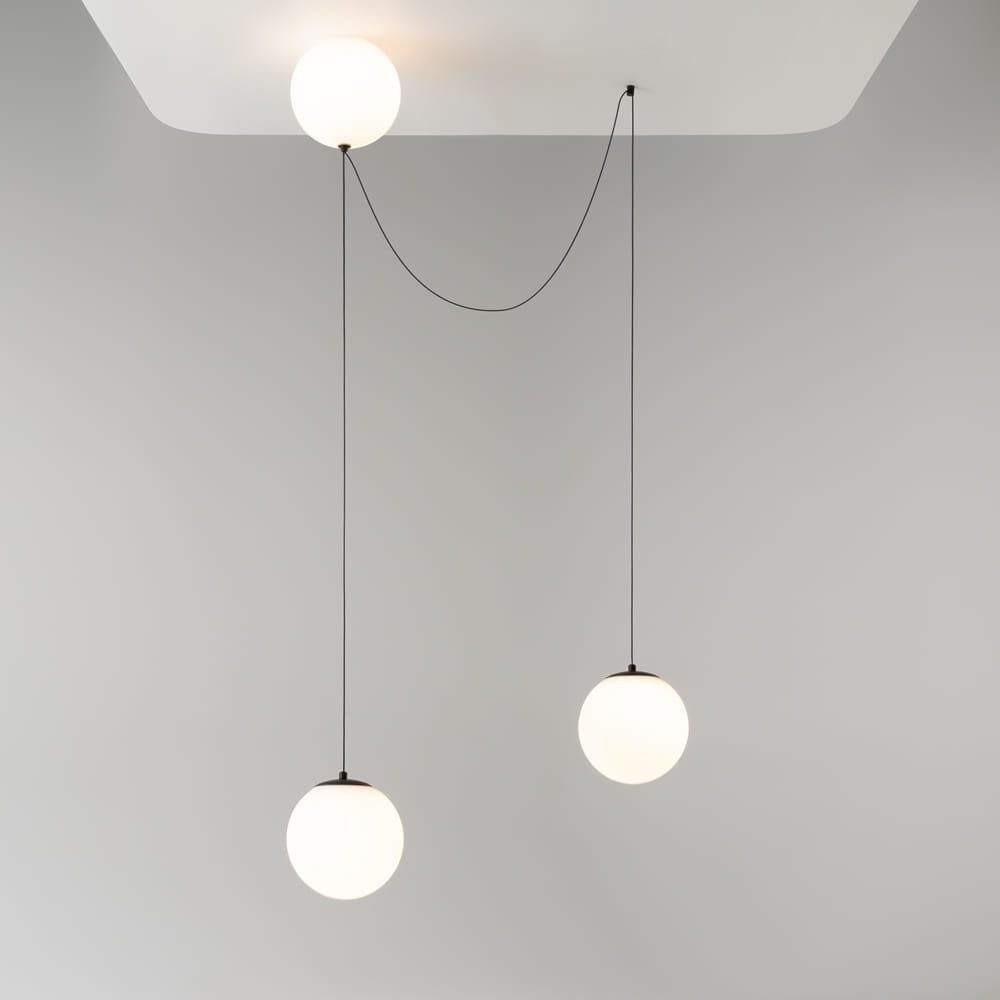 Lámpara colgante/aplique LED formada por dos esferas de cristal opal. 20W, 3000K, 1400lm, CRI90