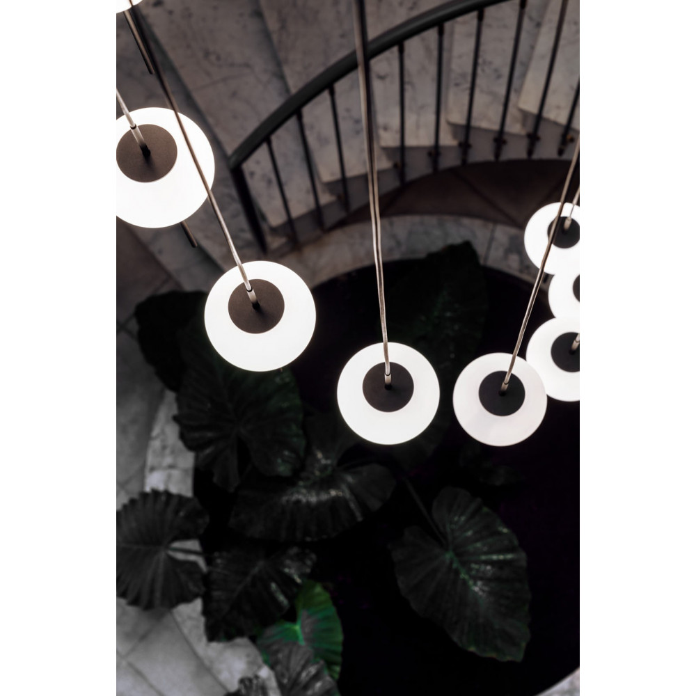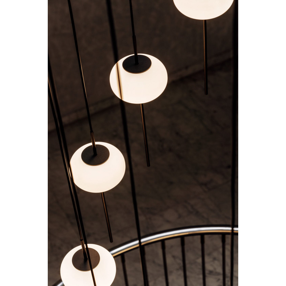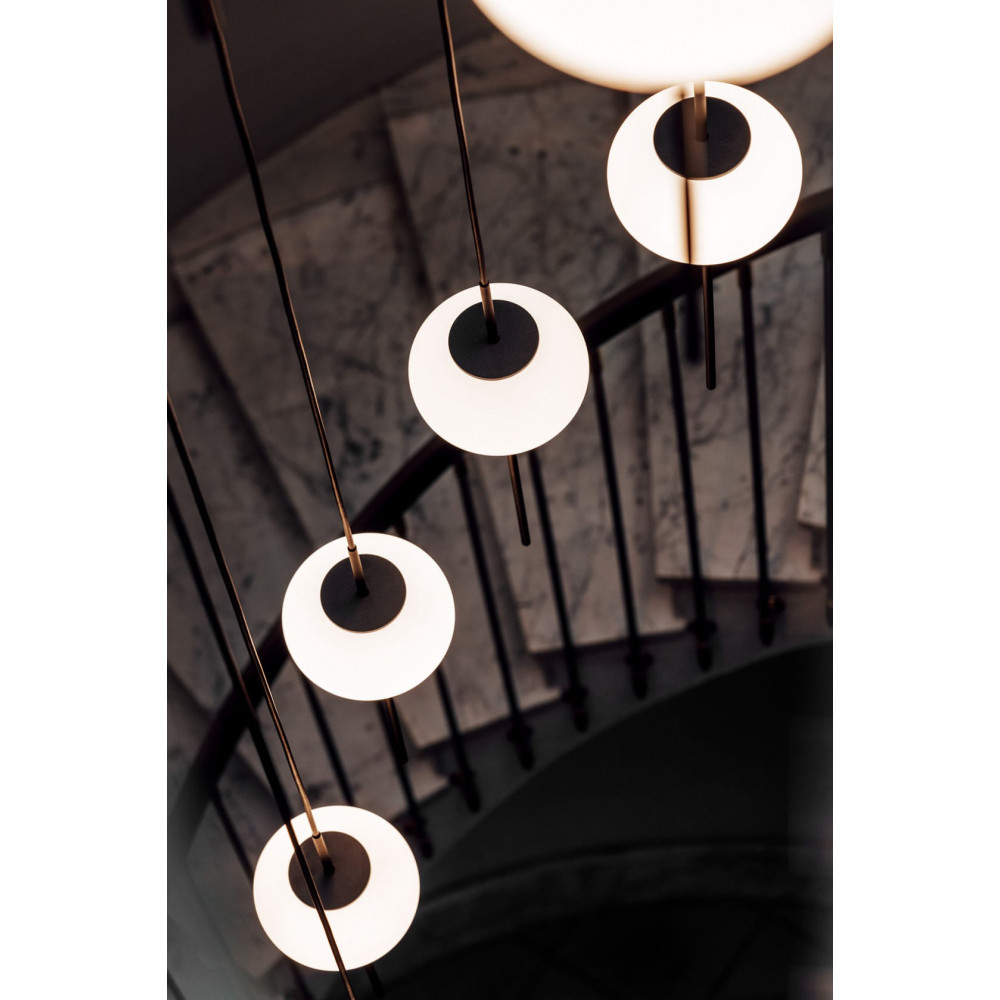 ASTROS Es un sistema de iluminación que aporta armonía en los ambientes y permite crear diferentes configuraciones. Igual que nos sucede cuando observamos las constelaciones en el firmamento, las formas que generan los distintos sistemas, nos transportan a ese momento de contemplación y serenidad. Es una luz tranquila, envolvente, que se presenta en las versiones de suspensión, suelo, sobremesa, además de una original versión colgante que se conecta a pared. Un sistema de infinitas variantes que resuelve situaciones comunes en proyectos de iluminación; huecos de escalera, halls y grandes espacios, restaurantes donde se busca una luz íntima sobre cada mesa, y que permite llegar a cualquier lugar desde una sola toma de corriente. Una propuesta especialmente dirigida al sector del contract, dónde los proyectos de iluminación requieren de coherencia y unidad.