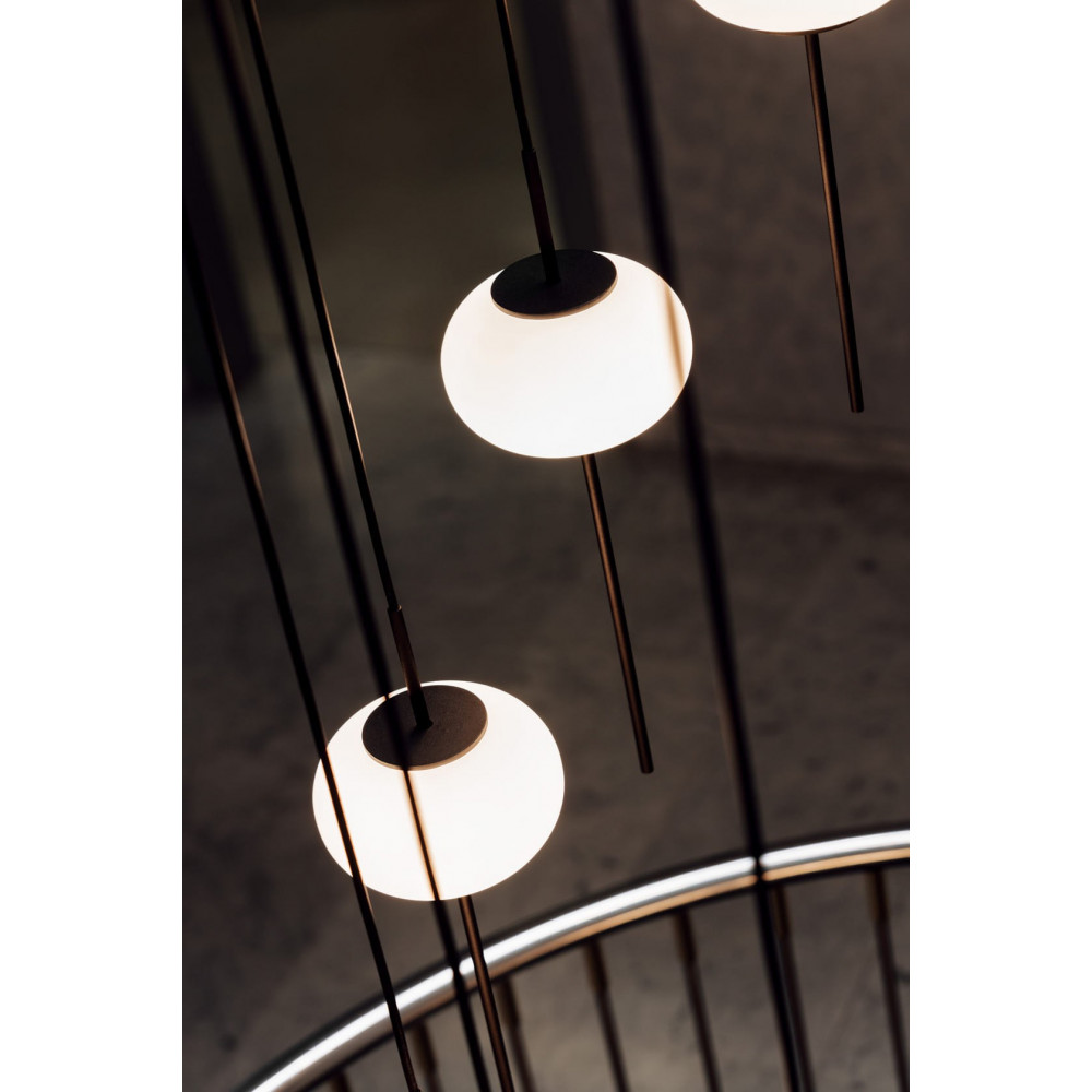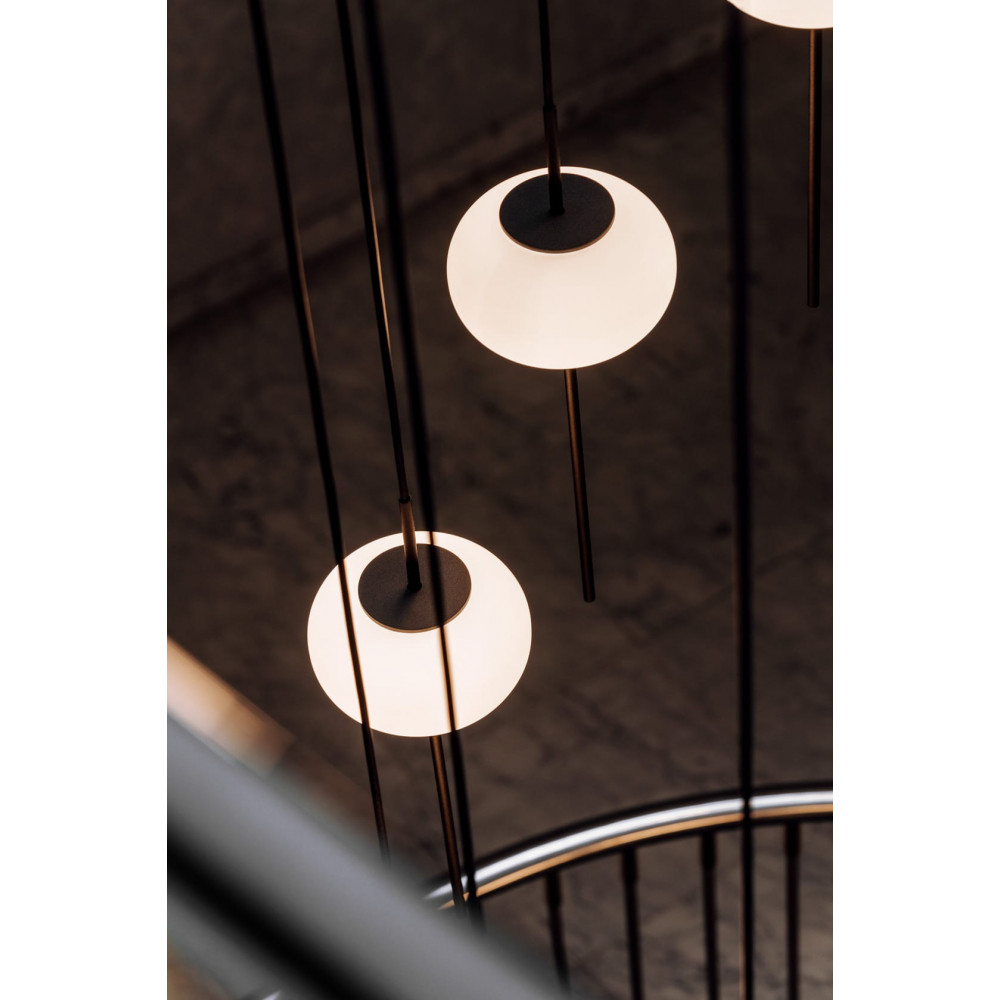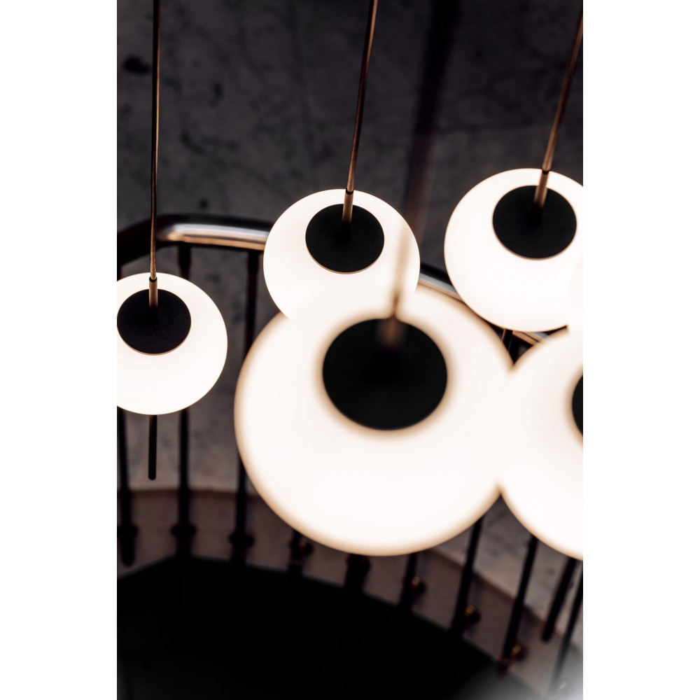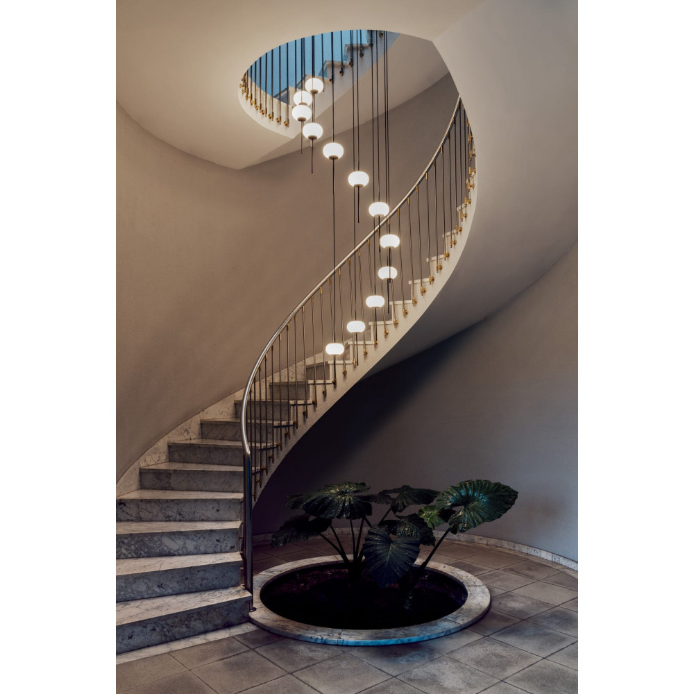 ASTROS Es un sistema de iluminación que aporta armonía en los ambientes y permite crear diferentes configuraciones. Igual que nos sucede cuando observamos las constelaciones en el firmamento, las formas que generan los distintos sistemas, nos transportan a ese momento de contemplación y serenidad. Es una luz tranquila, envolvente, que se presenta en las versiones de suspensión, suelo, sobremesa, además de una original versión colgante que se conecta a pared. Un sistema de infinitas variantes que resuelve situaciones comunes en proyectos de iluminación; huecos de escalera, halls y grandes espacios, restaurantes donde se busca una luz íntima sobre cada mesa, y que permite llegar a cualquier lugar desde una sola toma de corriente. Una propuesta especialmente dirigida al sector del contract, dónde los proyectos de iluminación requieren de coherencia y unidad.