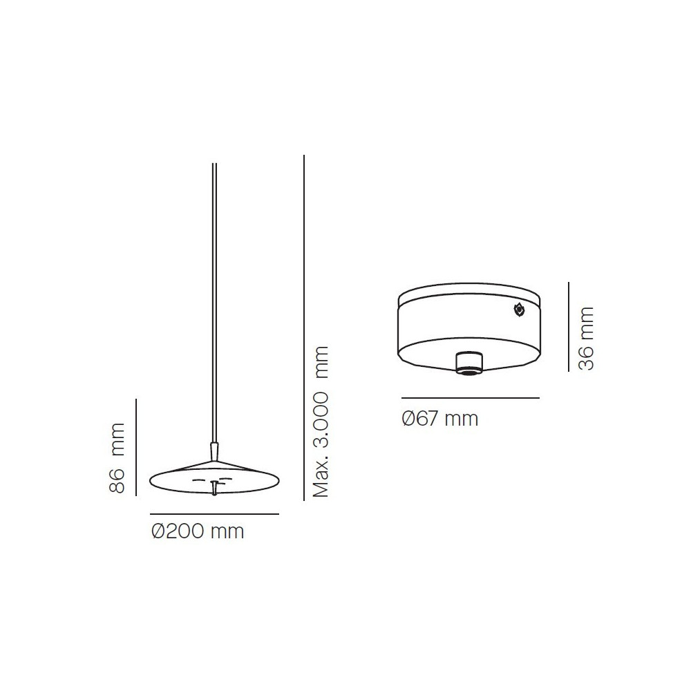 Colgante de techo acabado en lacado blanco texturado. Funciona con tres LEDs integrados, de 5W y color de luz cálida (2700K).