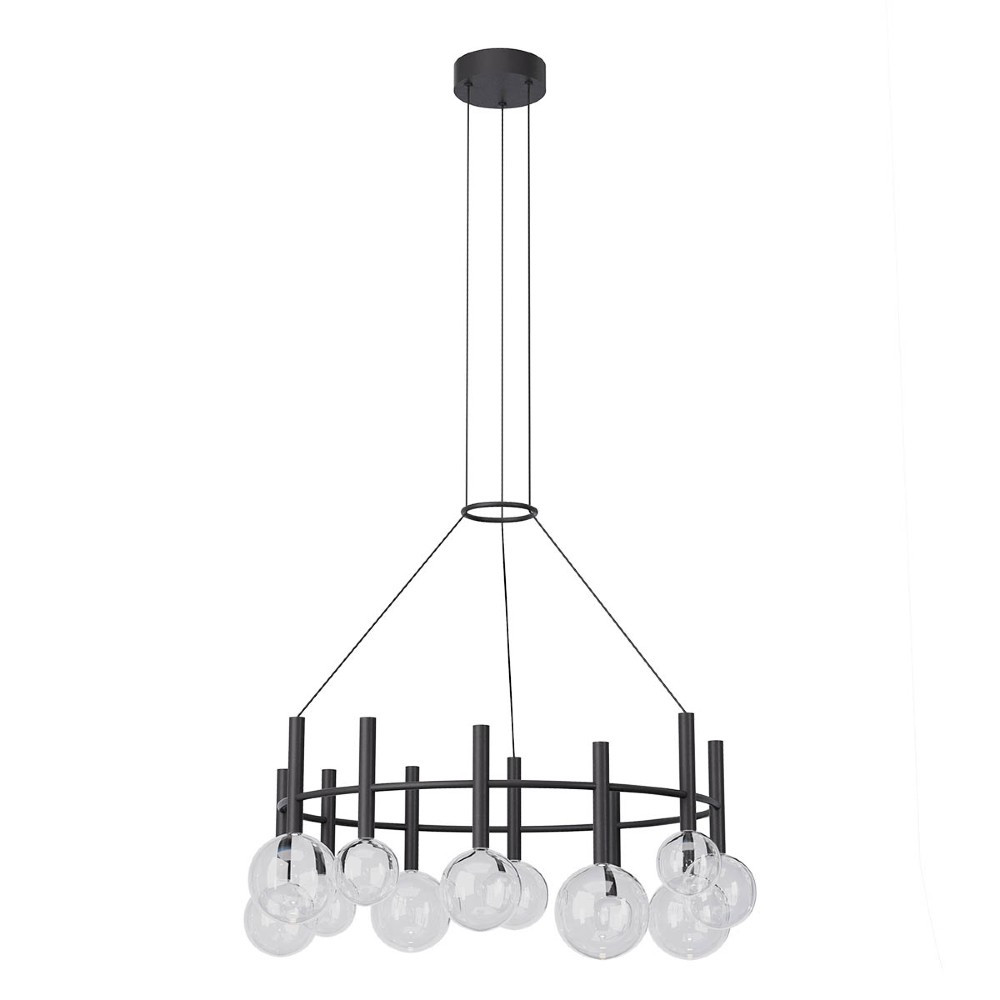 Suspensión para interior equipada con tecnología LED COB, ideal para aportar un toque de sofisticación y luz cálida a cualquier espacio. Su estructura en metal y aluminio pintado en negro arena combina calidad con un acabado elegante, mientras que el difusor de cristal soplado transparente realza la pureza de la luz y crea un ambiente acogedor y refinado.