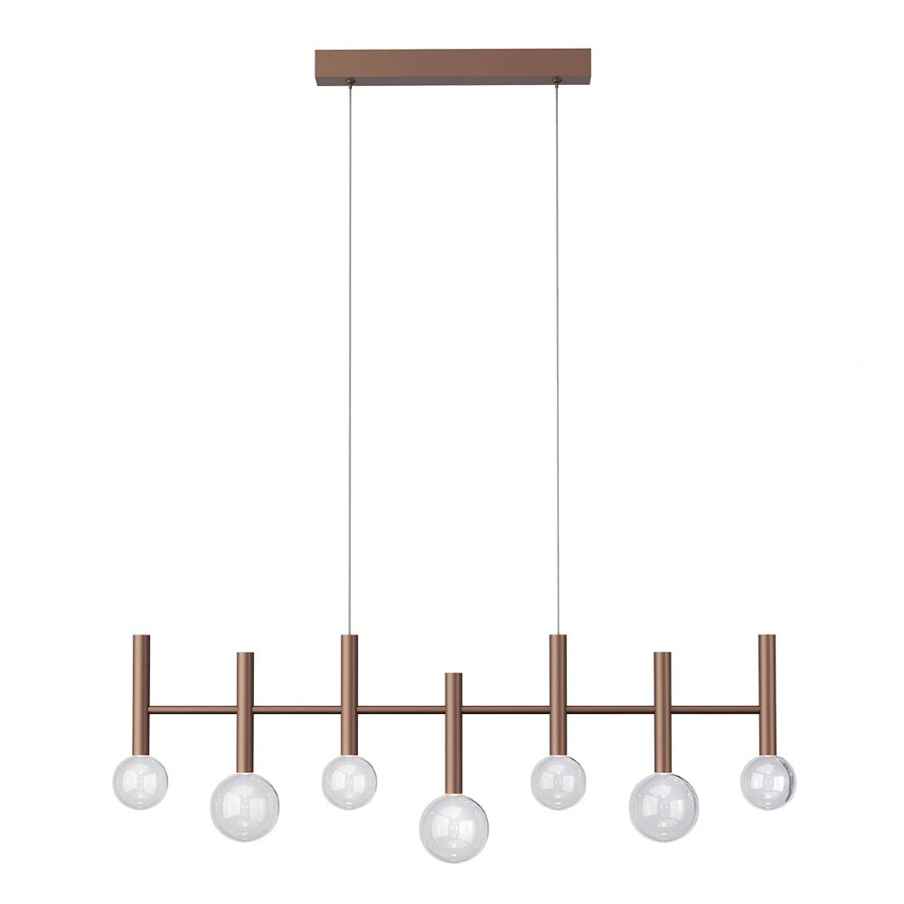 Suspensión para interior equipada con tecnología LED COB, ideal para aportar un toque de sofisticación y luz cálida a cualquier espacio. Su estructura en metal y aluminio pintado en café mate combina calidad con un acabado elegante, mientras que el difusor de cristal soplado transparente realza la pureza de la luz y crea un ambiente acogedor y refinado.