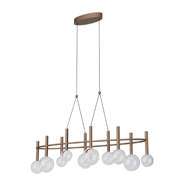 Suspensión interior, estructura de metal pintado negro mate, difusor de cristal soplado opal.