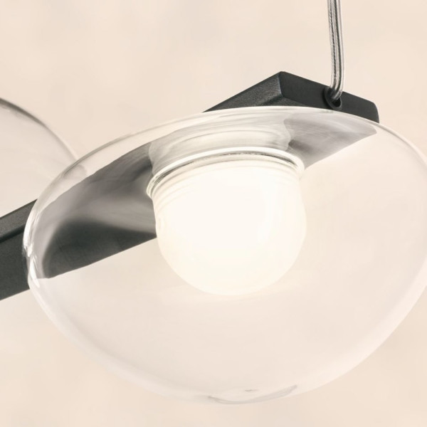 El diseño incorpora un doble difusor de vidrio PYREX, reconocido por su alta resistencia al calor y a los impactos. El difusor exterior transparente permite una excelente difusión de la luz, mientras que el difusor interior en vidrio blanco satinado suaviza el haz luminoso, creando una iluminación homogénea, cálida y sin deslumbramientos.