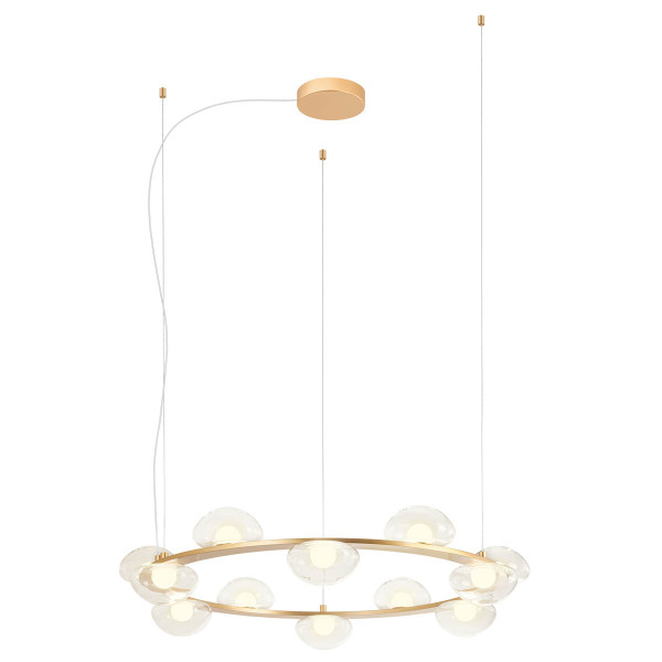 Colgante para interior equipado con tecnología LED SMD de alta eficiencia, que garantiza un bajo consumo energético y una larga vida útil. Su estructura metálica pintada en color negro arena u oro mate ofrece un acabado elegante, resistente y moderno, adecuado para una amplia variedad de estilos decorativos.