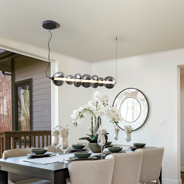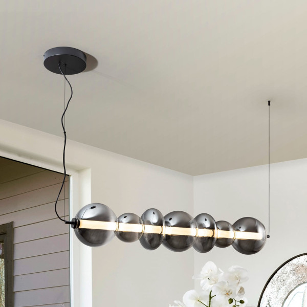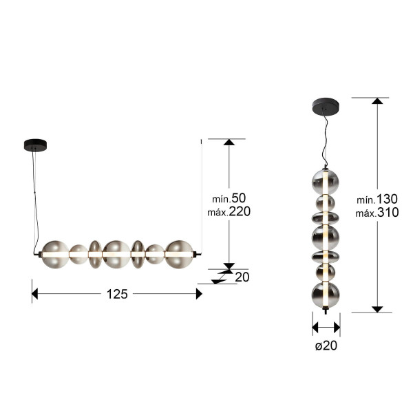 Lámpara colgante lineal LED de 160cm, acabada en negro. 38W, 3000K, 2850lm, CRI90, 36º
