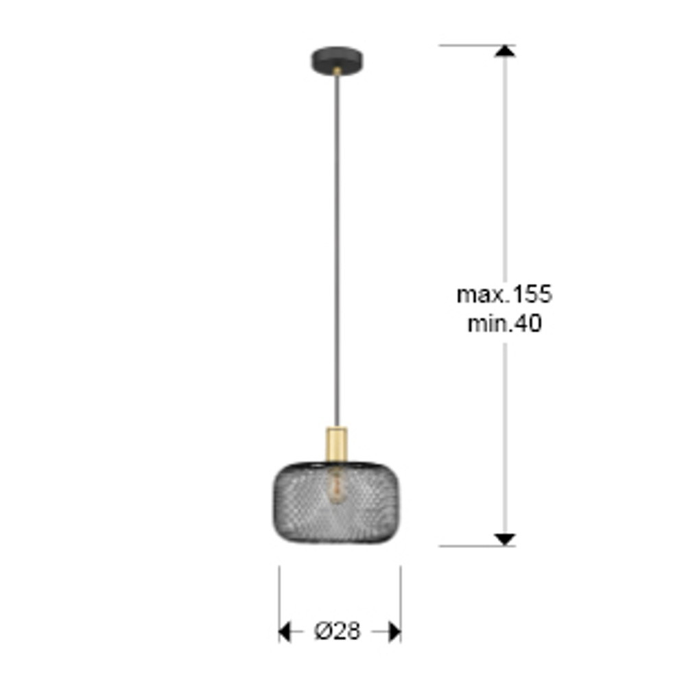 OSIRIS Lámpara de 1 luz realizada en metal, con tulipa de malla metálica, acabados pintura oro y negro mate. Cable enfundado textil negro.