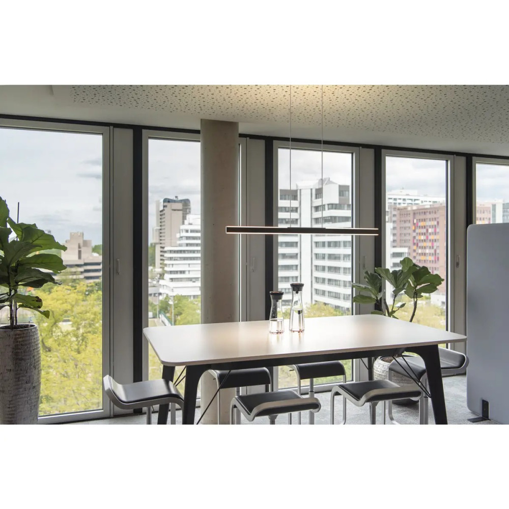 Colgante de techo acabado en lacado gris marengo. Funciona con tres LEDs integrados, de 7W y color de luz cálida (2700K).