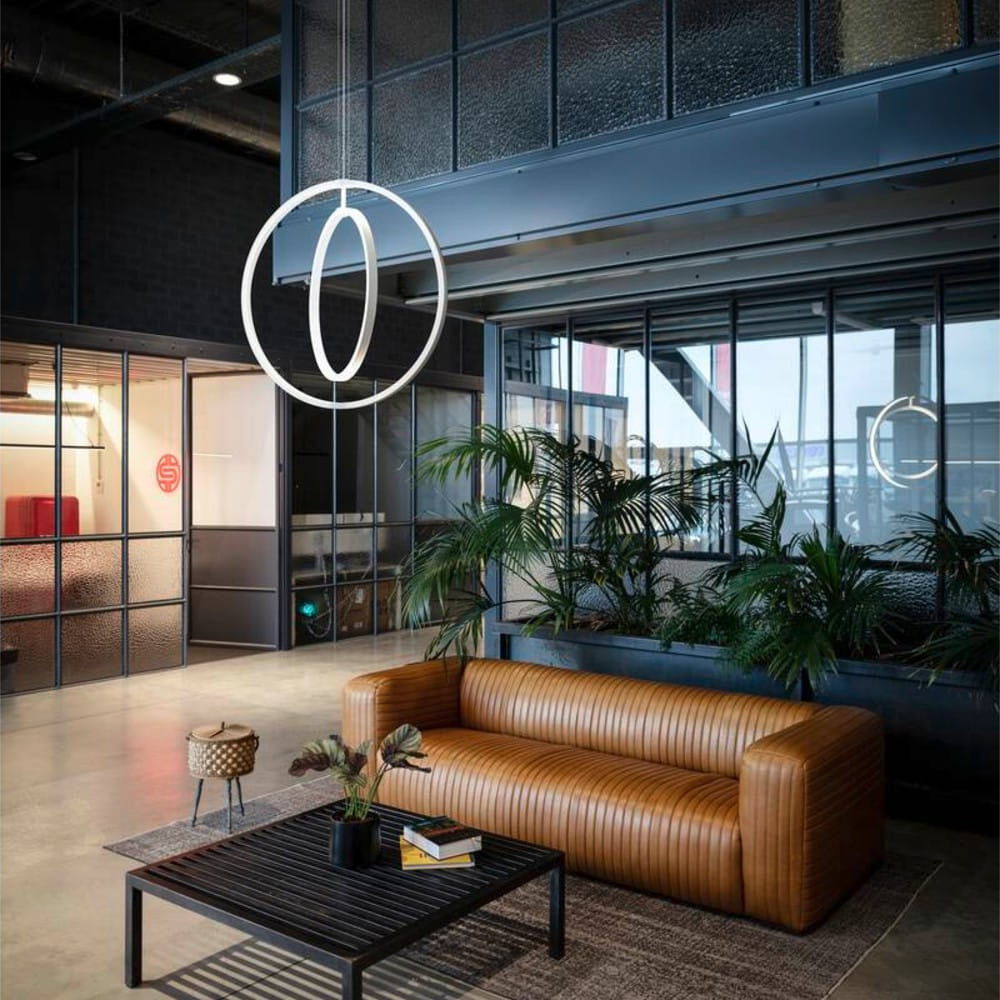 Colgante negro circular LED vertical con aro interior orientable. 40W, 2700K/3000K, 2550lm, dimmable