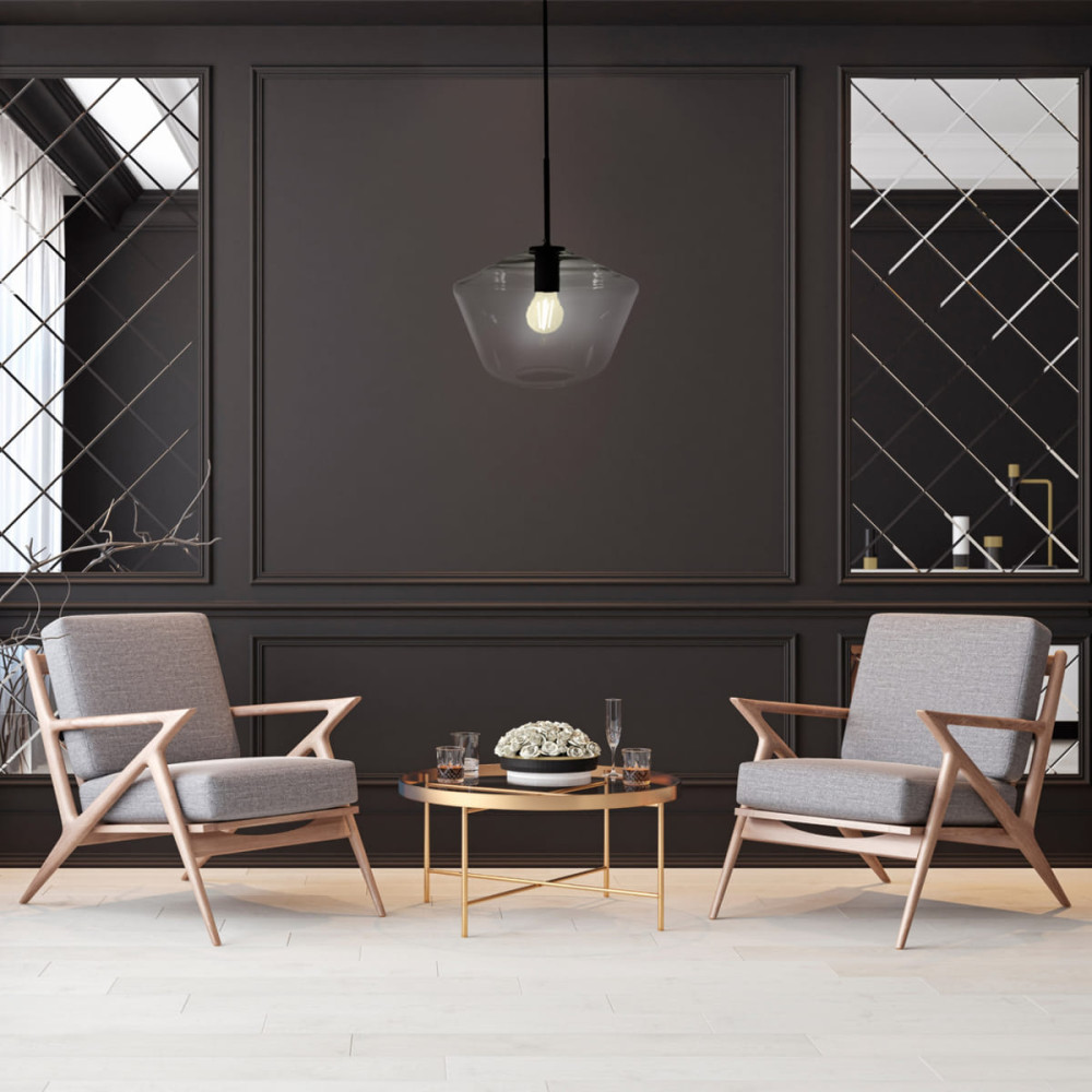 Lámpara de techo con pantalla de vidrio con portalámparas semirrígido en acabado negro. Esta lámpara de estilo vintage es perfecta para dar un toque personal a cualquier estancia. La finura del vidrio soplado ahumado se une al acabado negro, resultando en una combinación elegante y estilizada. Usa casquillo E27, altura regulable y cable negro en tela de nailon.