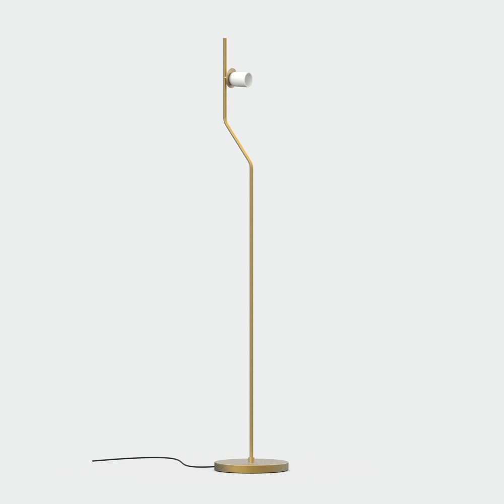 MAUI es una estructura de pie para iluminación interior. Fabricado en metal y con acabado en oro mate.
