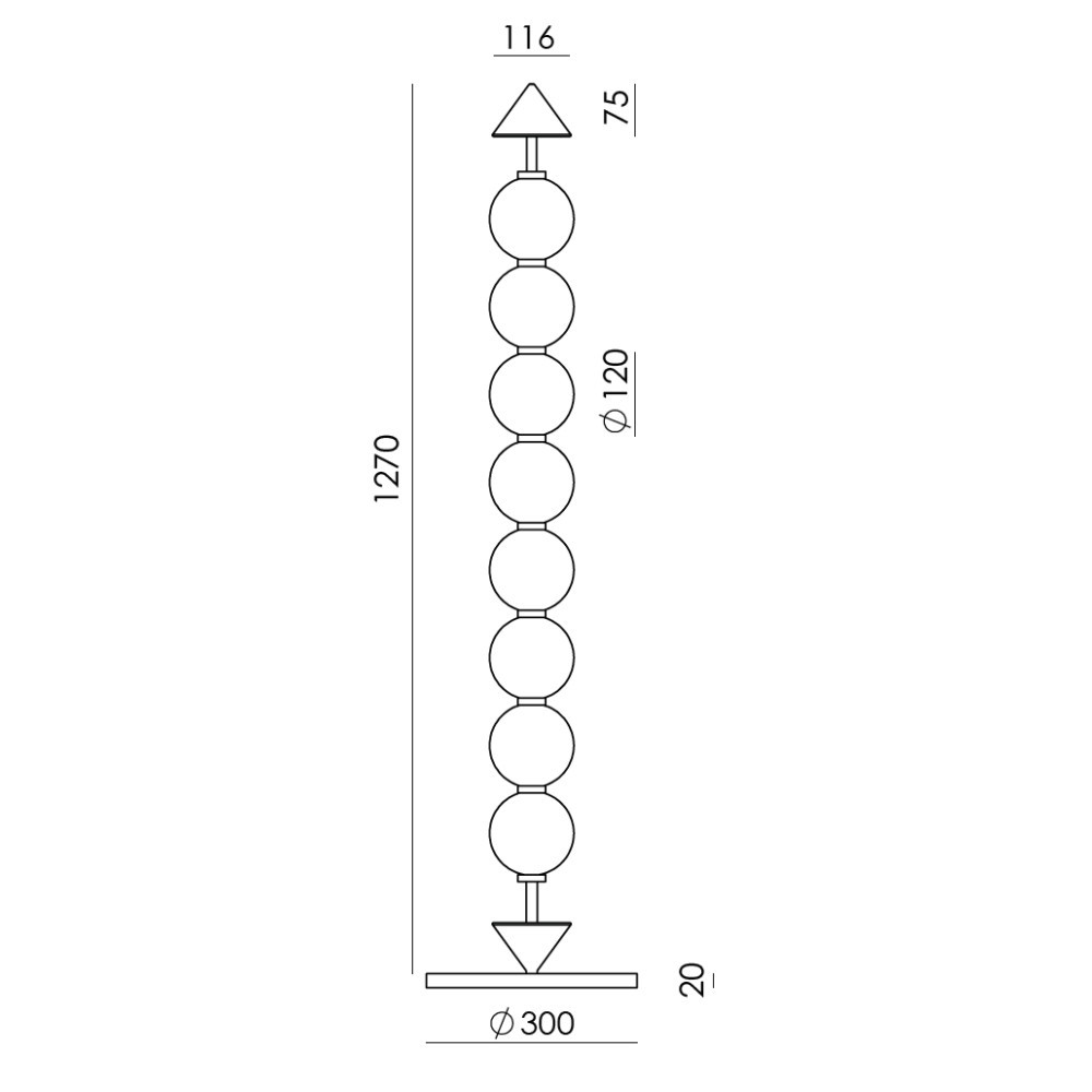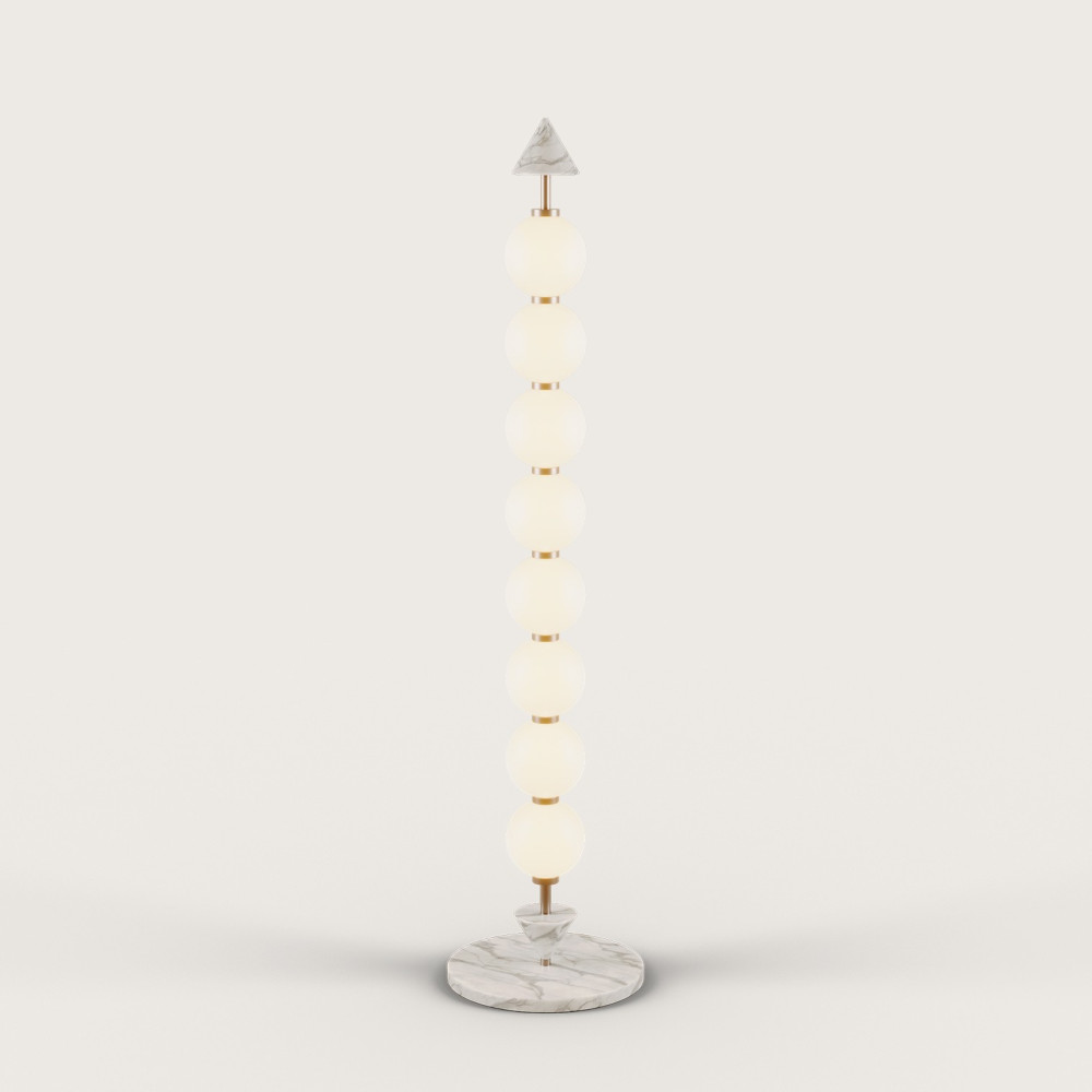 Lámpara de pie LED con 8 esferas de cristal, fabricado en metal y mármol disponibles en dos acabados.