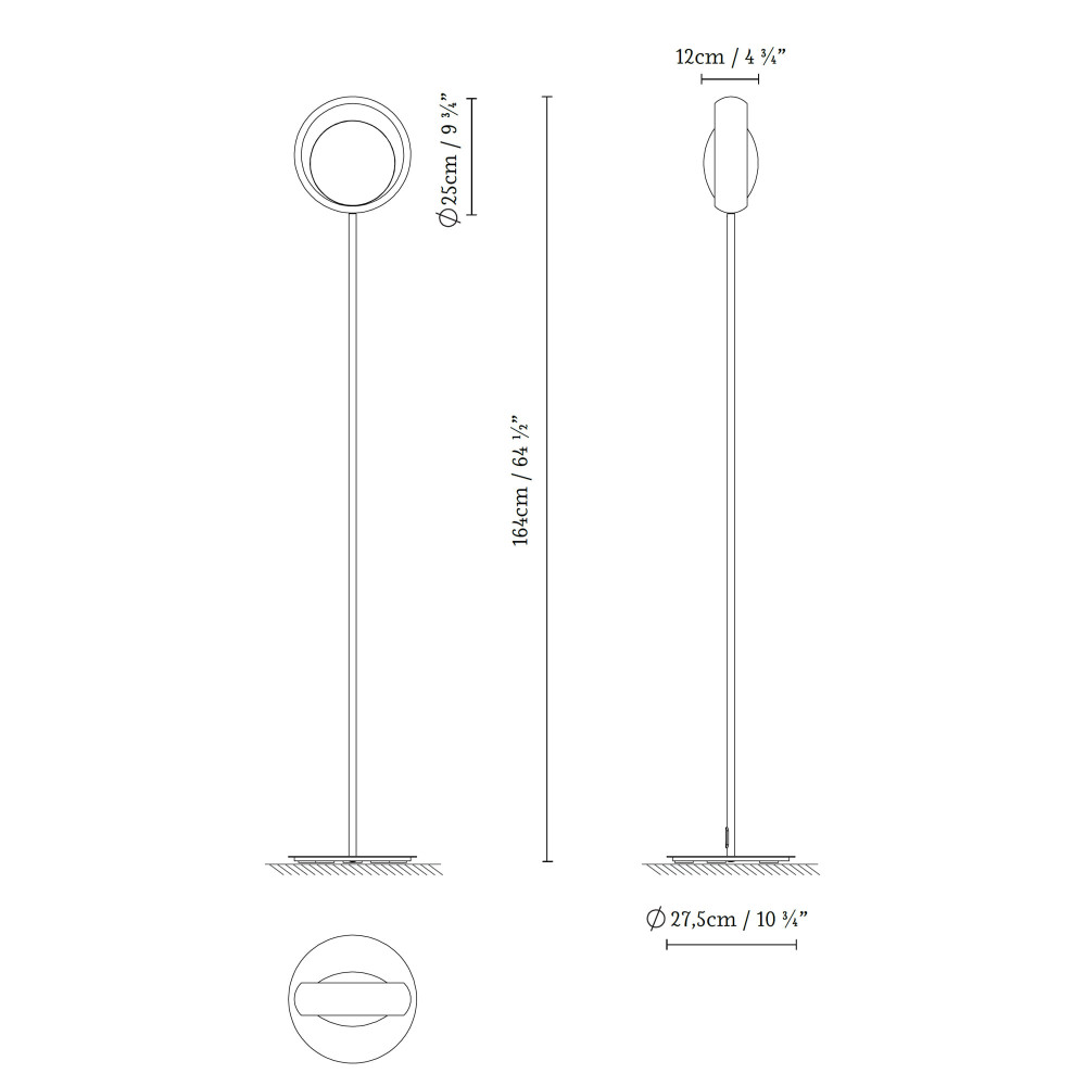La colección Ring parte de un anillo de 25 centímetros con un difusor de vidrio de 18 centímetros, lo que genera un vacío que hace las luminarias muy ligeras visualmente. La alta capacidad de difusión del vidrio garantiza una excelente calidad de luz y un mayor confort visual. Ring está disponible en diferentes acabados, incluyendo blanco, negro y latón. La colección está disponible en versión de sobremesa, pie, pared y suspensión.