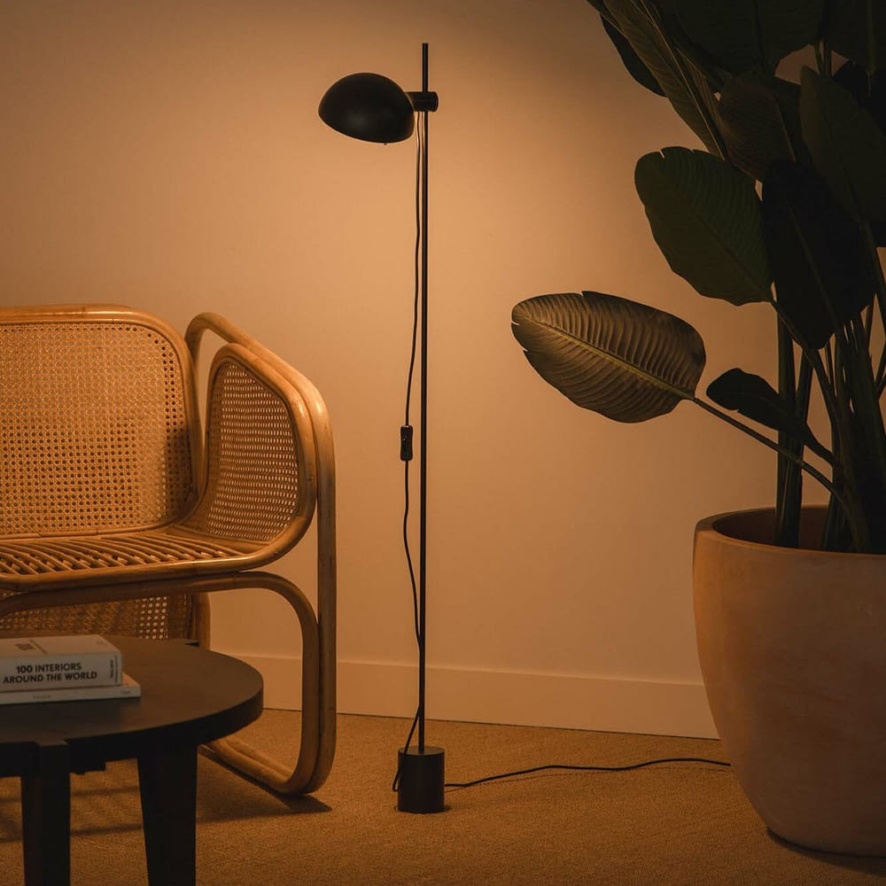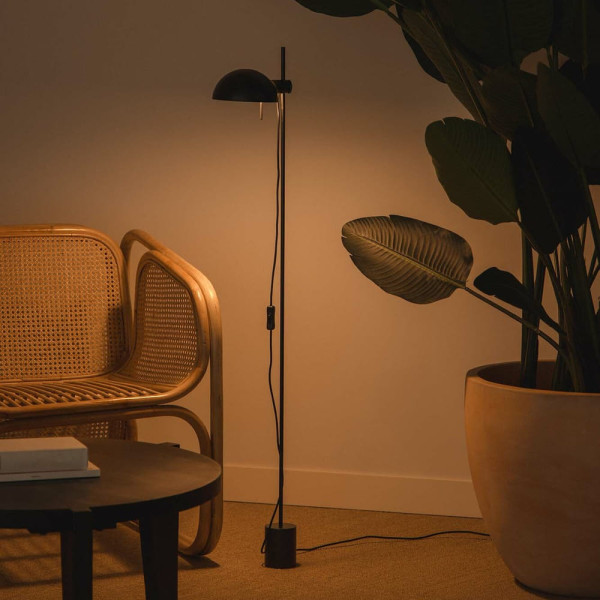 Lámpara de pie metálica orientable con cable de 2,5 metros, acabado negro. 1 x E14 LED (no incl.)