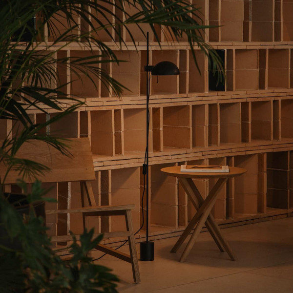 La familia MATILDA, diseñada por Faro Lab, hace gala de un minimalismo geométrico que le permite integrarse en cualquier espacio. Su sistema de pantalla giratoria y su regulación en altura ofrece gran variedad de efectos de luz, convirtiéndola en una colección multifuncional. La lámpara pie de salón en color negro se caracteriza por sus formas puras y geométricas.
